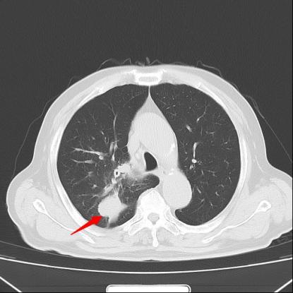 患者王大爷一年前体检发现右肺上叶有一约6×4mm结节,当时未予重视。一年后,他突然出现活动后喘憋症状,复查胸部CT显示右肺上叶后段出现约50×50mm不规则实性团块,影像学高度怀疑肺恶性肿瘤。