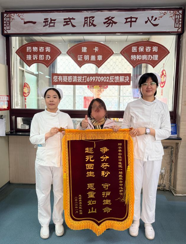 忙完这一切,两名护士便默默回归岗位,将这段小插曲淡忘了。可谁也没想到一个月后,一面锦旗送到了门诊一站式服务中心。康复后的王女士专程赶来,亲手将锦旗交到两位护士手中。她握着徐晶菁和乔晓晶的手,眼眶微红:“这一个多月,我一直惦记着你们。当时倒在地上的时候,脑子一片空白,是你们跑过来把我扶起来,那一刻我心里就有底了。身体一好,我第一件事就是来谢谢你们。”