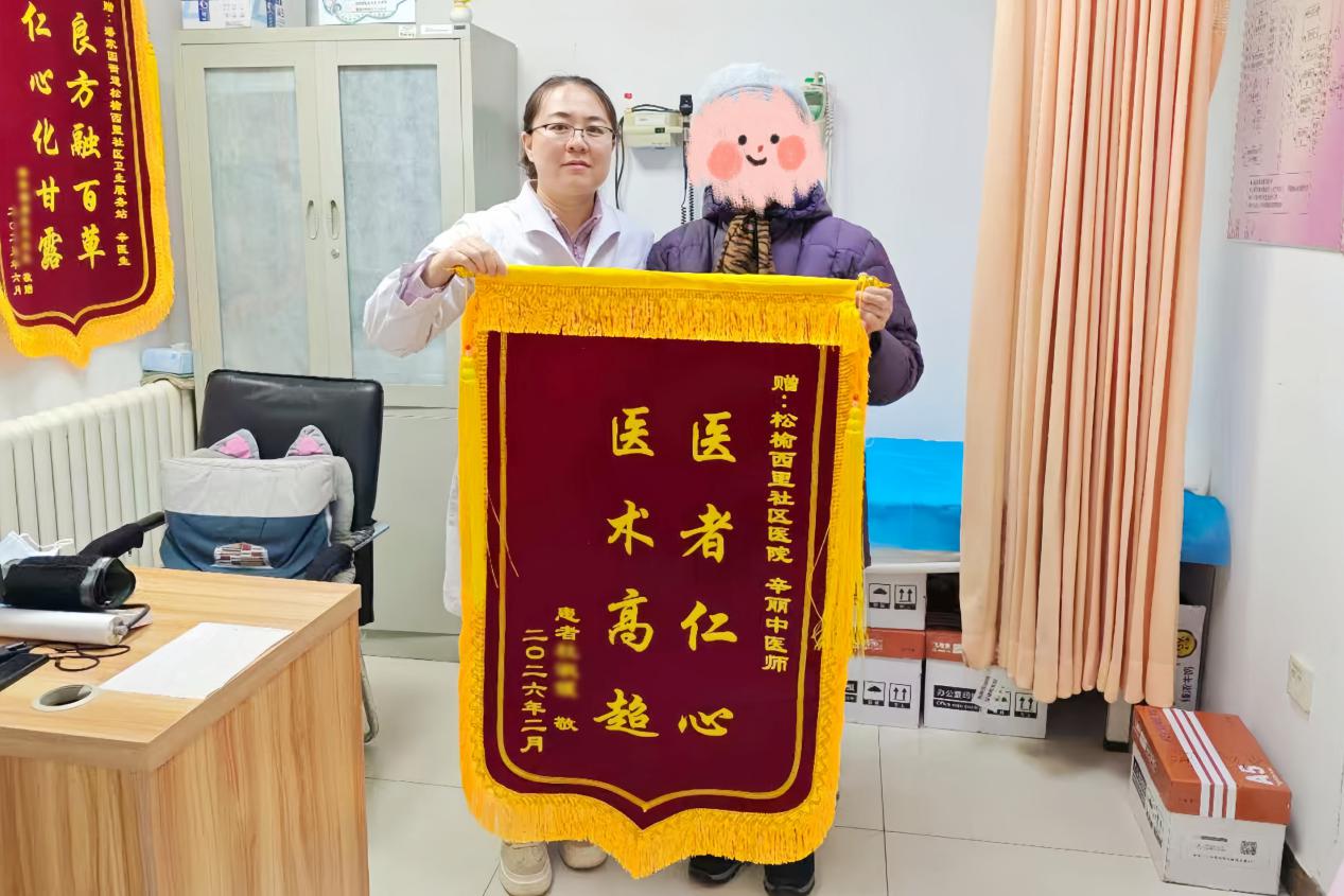 经过半年系统调理,患者腹痛症状明显好转,脾胃功能稳步恢复,体重回升,精神状态明显改善。为表达对辛丽丽的感谢,她不仅送来锦旗,还主动签约家庭医生服务,将自身健康托付给社区家医团队。