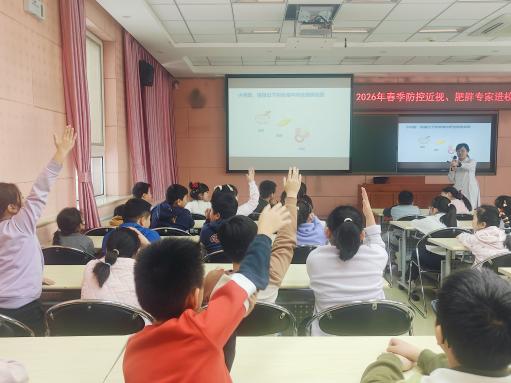 互动环节中,学生们踊跃提问,围绕“为什么不能多喝奶茶”“每天运动多久合适”等问题展开交流。徐岩耐心解答,并现场示范简单易学的居家运动动作,引导孩子们主动参与、积极践行健康生活方式。现场气氛热烈,孩子们不仅在轻松愉快的氛围中掌握了防控肥胖知识,更在他们心中种下了“爱健康、护身体”的种子,学会主动打败“肥胖小怪兽”,努力变身活力满满的健康小超人。