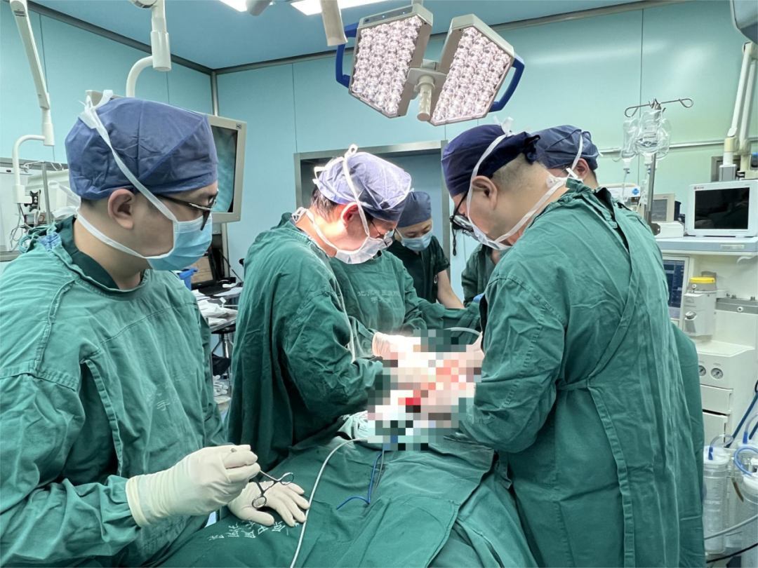 在充分的减压和严密的术前准备后,叶晋生团队成功为李大爷实施了腹腔镜下肠粘连松解术及小肠部分切除术。同时为了根治梗阻,叶晋生还通过人工补片完成盆底疝修补术,手术过程十分顺利,彻底解除了肠道的物理“路障”。