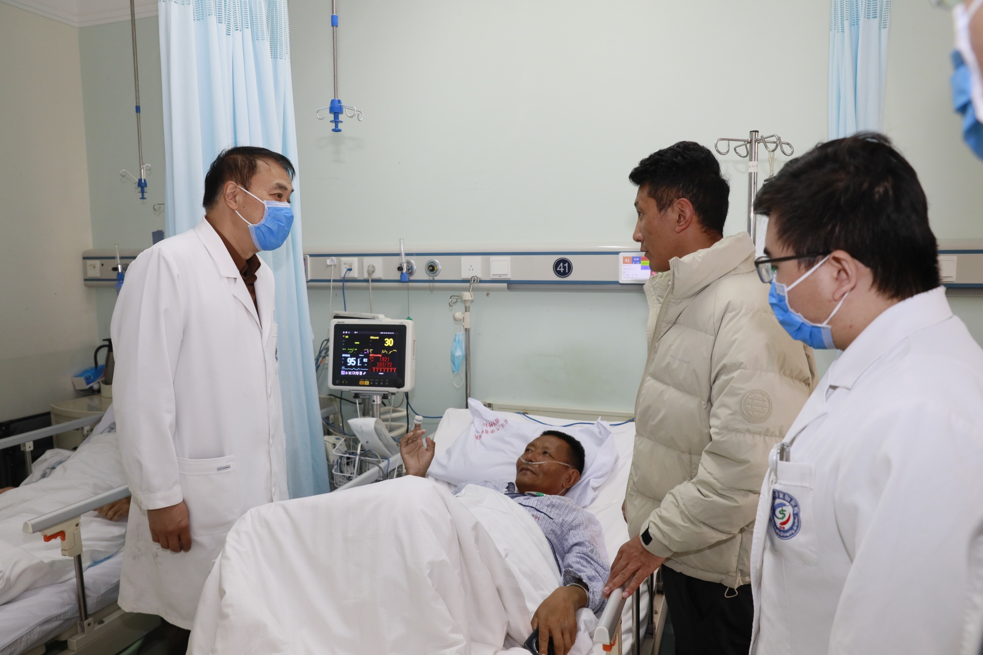 作为扎南的主管医生,牛鹏飞经常上演“无声胜有声”的沟通,他会翻出手机里食物的图片,比划着教扎南分辨术后饮食禁忌。护士们在日常护理查房、诊疗操作和健康宣教方面,提供了细致入微的护理服务,缓解患者紧张情绪。一来二去,扎南和妻子嘎卓在北京学会的第一个汉语词语是“谢谢”,从此,“谢谢”便成了这对夫妻挂在嘴边、表达最多的话语。索朗占堆还满怀感动地提起:“牛鹏飞医生特别细心,他看我们全家都没经历过这么大的手术,怕家属在外边干着急,专门过来向我们讲解可能遇到的情况,安慰我们不要怕。”这番用心,驱散了患者家属心中的阴霾。