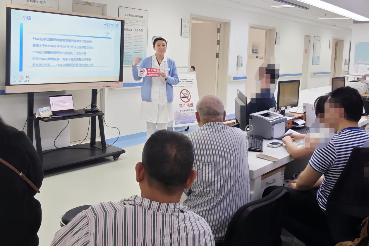 讲座重点强调了戒烟与安全防护的重要性。医生强调,吸烟是前列腺癌发生、发展及术后复发的重要危险因素,长期吸烟会显著增加疾病进展风险,同时也会影响术后康复速度。医护人员通过图文展示、数据对比等直观方式,详细讲解了吸烟对前列腺健康的具体危害,并从“如何科学戒烟”“戒烟过程中的心理调节”“家庭辅助戒烟方法”等方面给出实用建议。此外,还围绕病区安全注意事项、日常防护要点、饮食与运动康复指导等内容进行了补充说明,助力患者及家属构建全方位的健康防护体系。