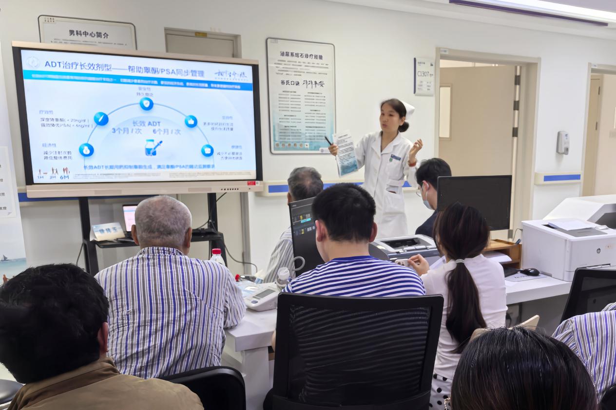 讲座由泌尿外科主任龙建华、护士长徐玮玉、主治医师夏俊哲、主管护师魏美荣分别主讲。讲座内容紧扣前列腺相关防治核心,医疗护理分别从疾病的发病机制、高危因素、早期筛查手段,到临床治疗方案、康复护理要点进行了全面细致的讲解,还组织了互动答疑环节。针对患者及家属普遍关注的“前列腺如何保护”“前列腺癌是否等同于绝症”“早期发现异常的关键是什么”“治疗后如何长期管理”等问题,医疗、护理结合临床案例逐一剖析,用通俗的语言拆解专业医学知识,消除了大家对疾病的认知误区与恐惧心理。