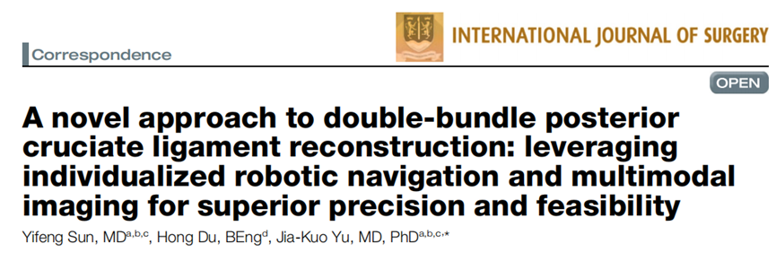 相关研究成果以A novel approach to double-bundle posterior cruciate ligament reconstruction: leveraging individualized robotic navigation and multimodal imaging for superior precision and feasibility(《基于个体化机器人导航与多模态成像的后交叉韧带双束重建更准确可行》)为题,发表于International Journal of Surgery(《国际外科学杂志》)。余家阔为本文通讯作者,北京清华长庚医院骨科与运动医学中心主治医师孙义峰为第一作者,该工作获得北京市科技项目支持。