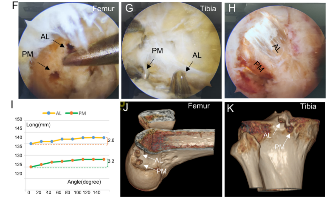 图1、后交叉韧带的前外侧束(ALB)与后内侧束(PMB)股骨及胫骨定位