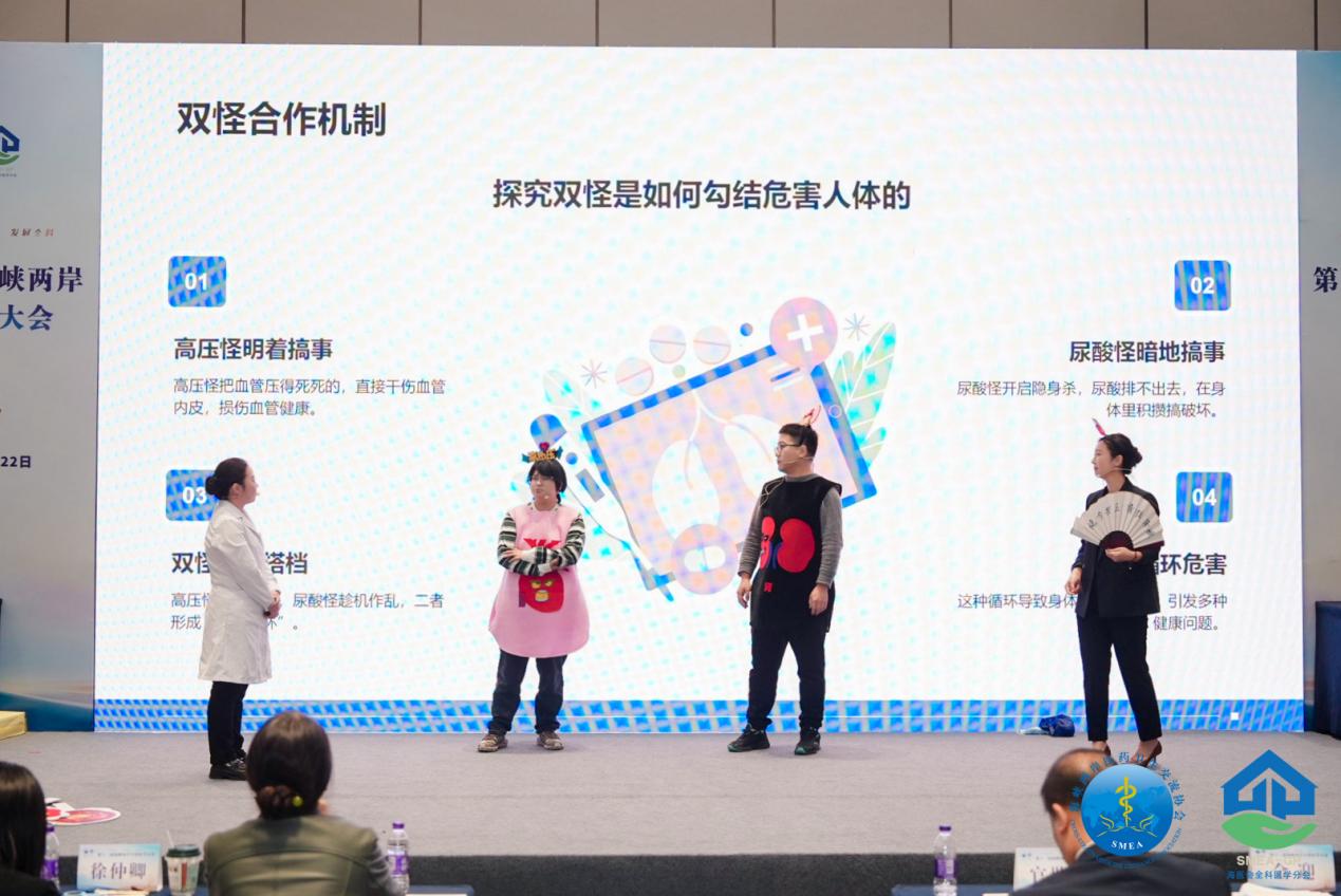 “让一让啊让一让,本高压怪驾到!”当这句充满戏剧性的台词在大会会场响起,由中心全科医生自编、自导、自演的健康科普情景剧 《双怪来袭,健康反击》 拉开帷幕。
