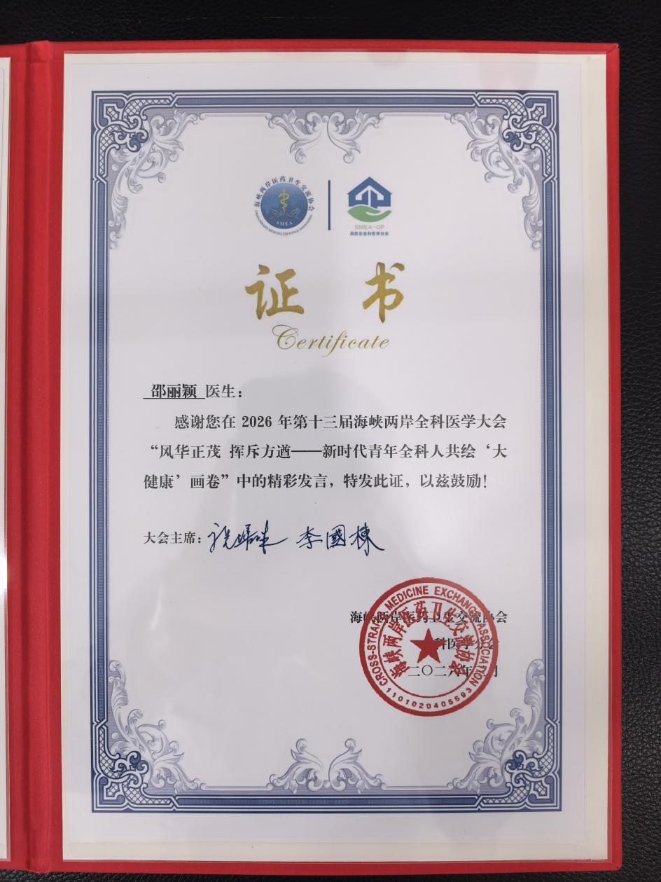 此外,中心投稿的《社区全科人才培养-赋能基层服务能力提升创新模式》一文,经大会学术委员会从选题、方法、内容、结果的应用价值等方面综合评审后,入选“2026年海峡两岸全科医学大会优秀论文集”,将在全科医学相关核心期刊刊登。