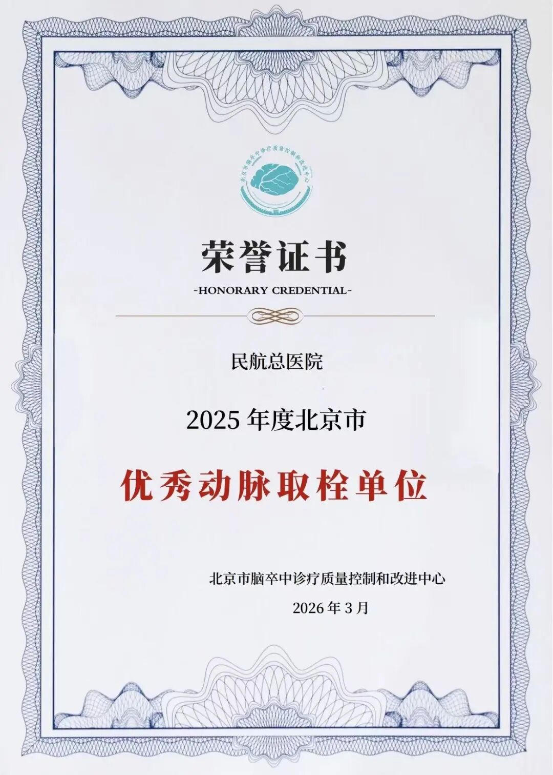 3月28日,在北京市脑卒中诊疗质量控制和改进中心主办的“2026年北京市脑卒中诊疗质控工作会暨北京市百万减残工程推进会”上,民航总医院卒中中心建设工作荣获两项重要殊荣——“北京市三级卒中中心”及“2025年度北京市优秀动脉取栓单位”。这不仅是对民航总医院卒中救治能力的权威认证,更是全院上下在脑血管疾病诊疗领域持续深耕、协同攻坚的重要里程碑。
