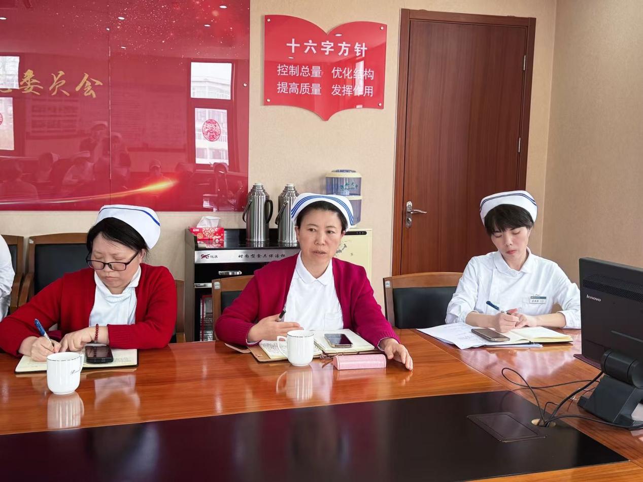 培训过程中,胡立芹主任围绕当前传统交接班模式存在的问题与不足进行深入剖析,系统阐释了全面推广SBAR交接班模式的重要意义与实践价值。她结合临床工作实际,详细解读了SBAR交接班模式的核心内涵、规范流程及临床应用要点,为后续模式落地提供了清晰指引。培训最后,胡立芹主任要求各科室护士长带头深化学习理解,及时组织开展科内二次培训,确保全院护理人员熟练掌握、规范应用。