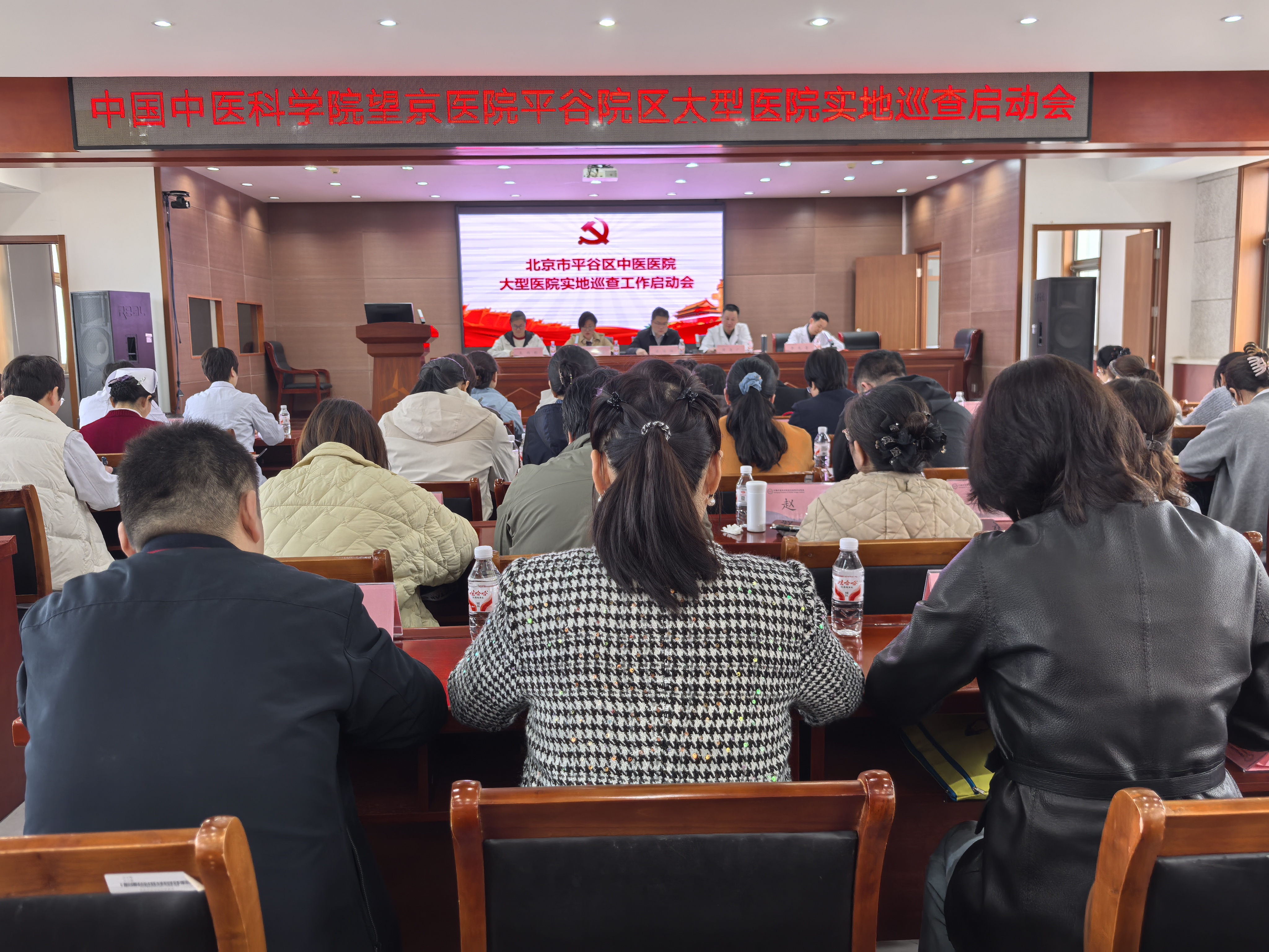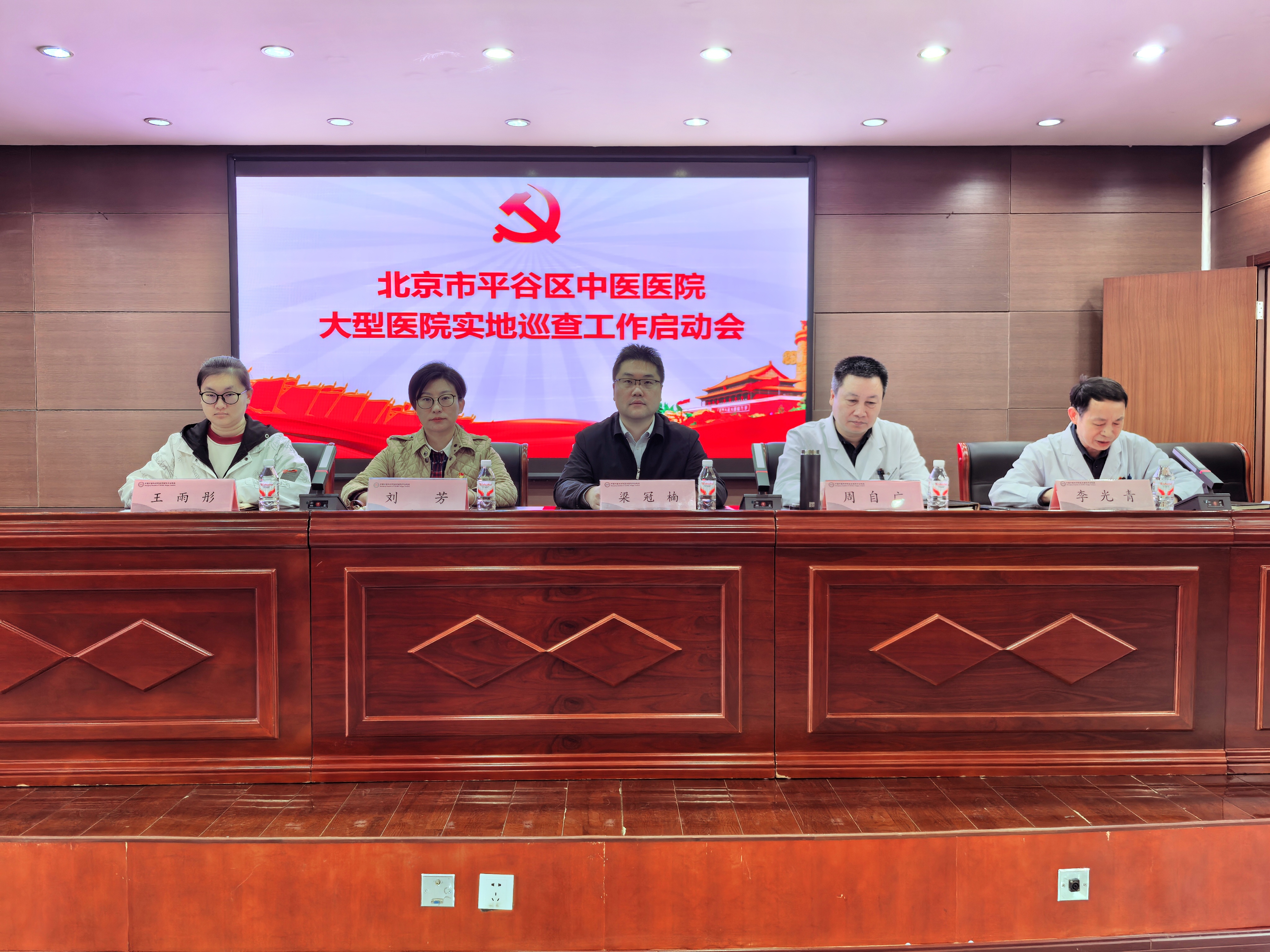 2026年4月9日上午,中国中医科学院望京医院平谷院区大型医院实地巡查启动会于院区多功能楼三层大会议室隆重举行。本次会议由医院纪委书记李光青主持,区卫健委副主任梁冠楠、医管科科长王雨彤、区医院纪委书记刘芳、巡查组专家、平谷院区领导班子以及各职能科室负责人等相关人员参会,共同开启实地巡查各项工作。