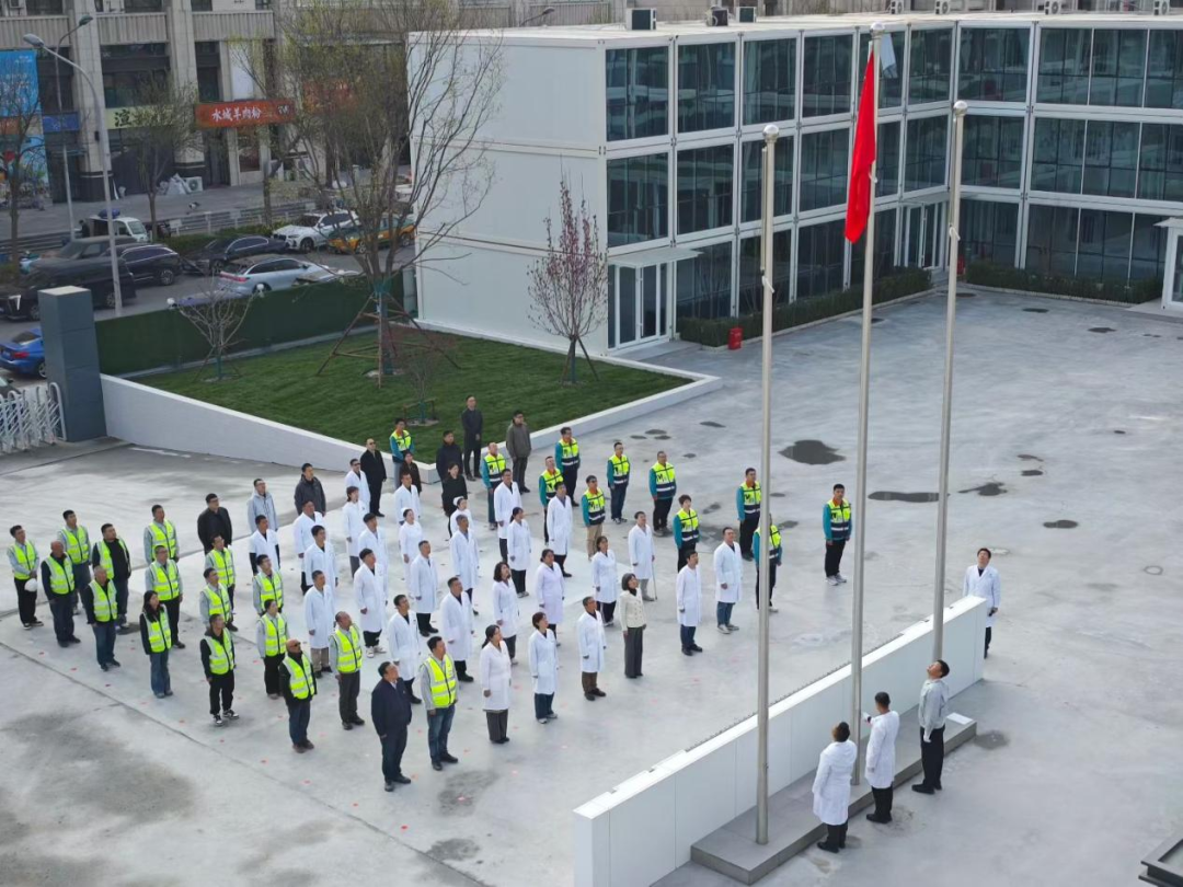 活动在庄严的升国旗仪式中拉开帷幕,仪式由医院急诊危重症诊疗中心党支部书记曲志成主持。雄壮的《义勇军进行曲》响彻施工现场,鲜艳的五星红旗迎着朝阳缓缓升起,全体人员整齐列队、肃立注目,神情庄重肃穆。