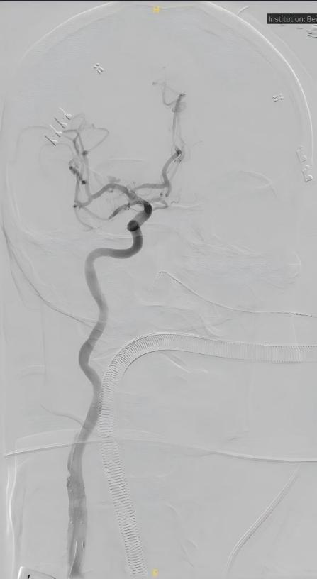 患者曾出现过短暂性脑缺血等症状,伴有血管内微小血栓脱落,情况危急。入院检查后发现,其右侧脑部血管中,藏着两处隐患:右颈内动脉起始部重度狭窄伴不稳定斑块,狭窄程度达70%,随时可能引发急性脑梗死。同时,患者同侧颅内还有一个不规则动脉瘤,存在破裂出血的致命风险。