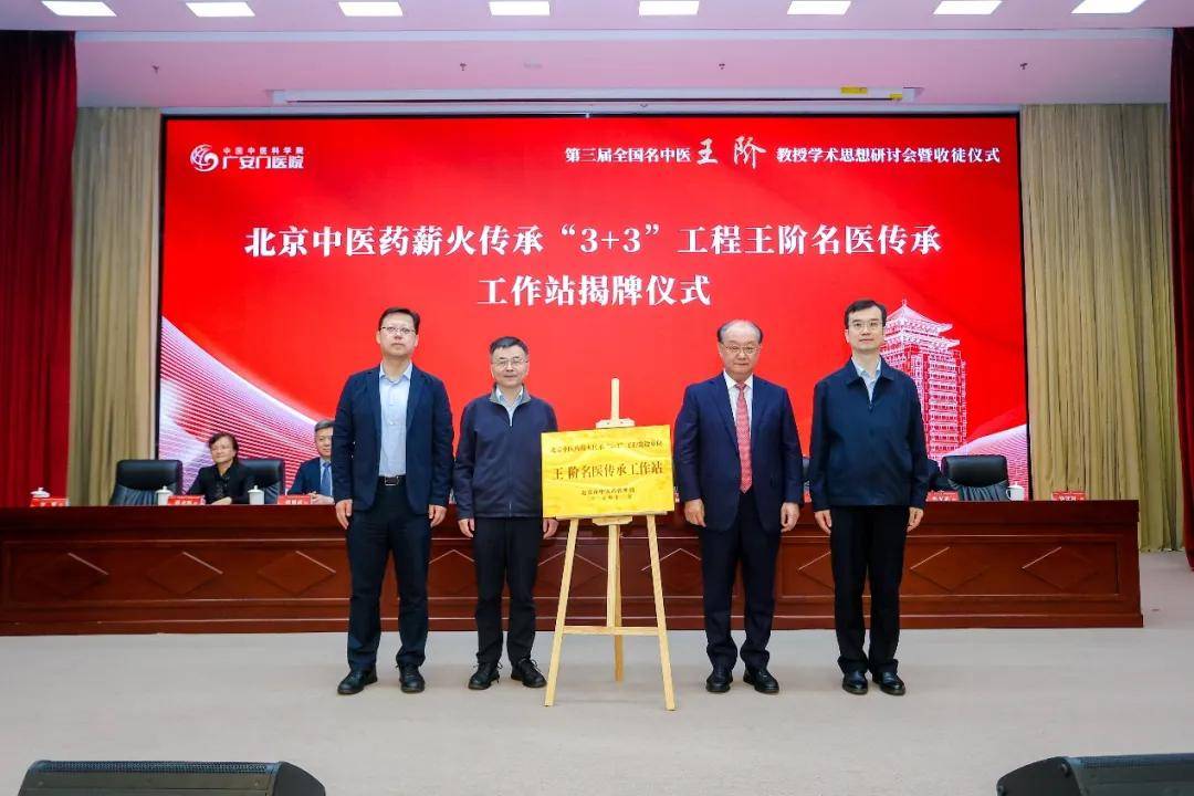 开幕式后,杨洪军副院长、刘震书记、刘龙涛副院长与王阶教授共同为北京中医药薪火传承“3+3”工程王阶名医传承工作站揭牌。