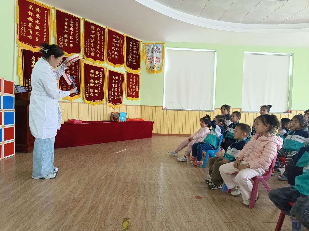 “小朋友们,你们知道我们嘴巴里住着多少颗小牙齿吗?它们都叫什么名字呀?”活动一开始,口腔科刘巧巧医生就用亲切的笑容和生动的图片、牙齿模型,瞬间抓住了孩子们的注意力。从“认识我们的牙齿小伙伴”到“乳牙护理的小妙招”,刘医生用孩子们听得懂的“儿童语言”娓娓道来,将抽象的知识变得形象易懂。