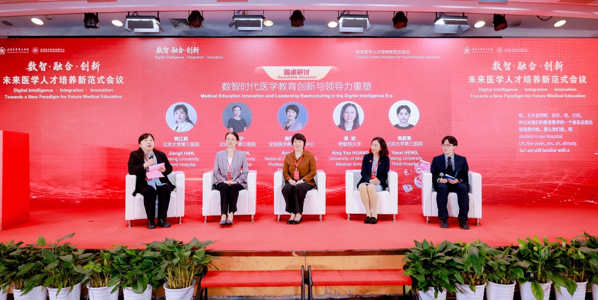 在“数智时代医学教育创新与领导力重塑”圆桌研讨中,北京大学医学教育研究所常务副所长谢阿娜,Amy Huang,沈宁及北京大学第三医院学生代表衡彦熹围绕数智时代医学教育领导力的核心要素、培养路径及评价机制展开深入探讨,为医学教育管理者的能力提升提供了宝贵思路。