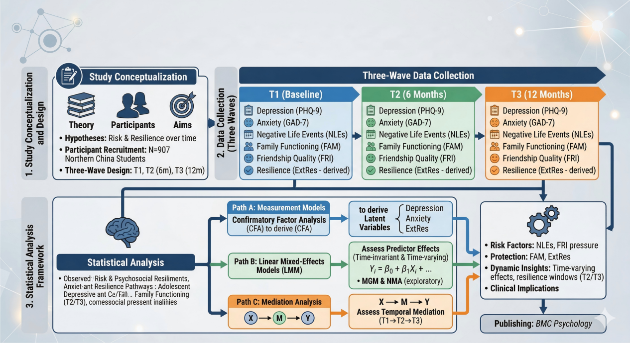 该论文已于2026年3月27日在线发表,DOI: 10.1186/s40359-026-04439-z。研究通过对907名初中生为期一年的三波动态追踪,首次系统揭示了心理社会风险因素与保护性因素在青少年情绪障碍形成中的复杂交互作用,为青少年心理健康的早期识别与阶段性干预提供了重要的科学依据。