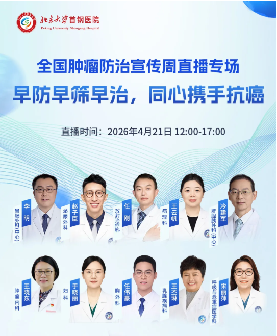 线下的温暖延续到了线上。当天中午12点到下午5点,北京大学首钢医院同步推出了直播专场《早防早筛早治,同心携手抗癌》。胃肠外科、泌尿外科、放射治疗科、病理科、肝胆胰外科、肿瘤科、妇科、胸外科、乳腺疾病科、呼吸与危重症医学科——十大科室的权威专家轮番上阵。
