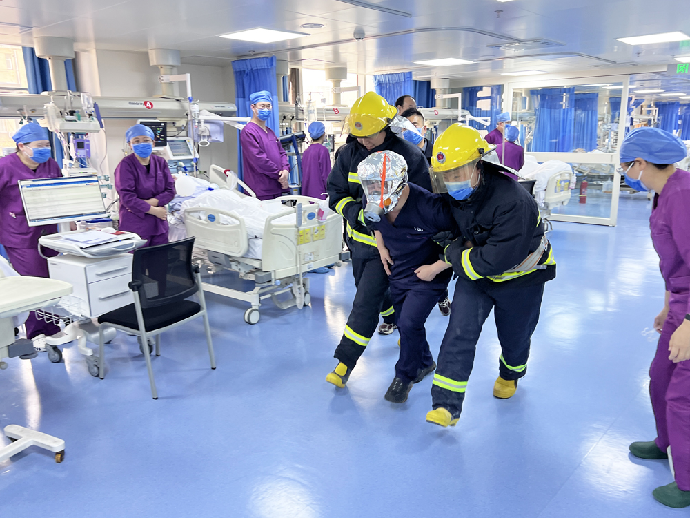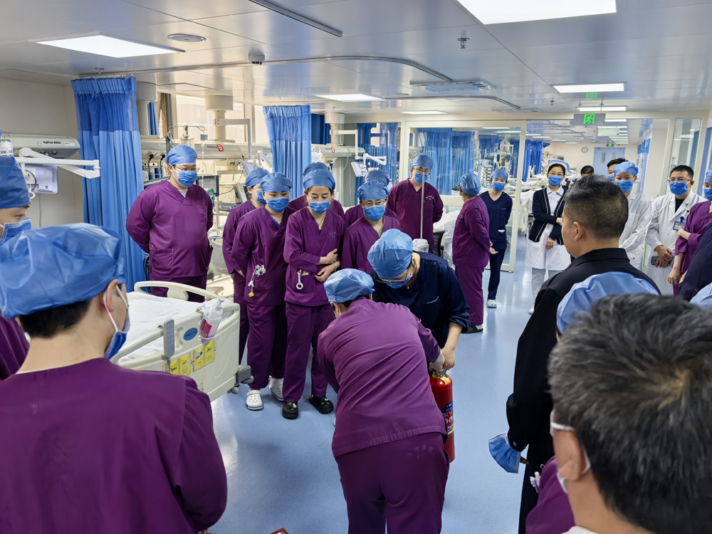 为深入贯彻总体国家安全观,切实筑牢医疗场所消防安全防线,我院坚持以党建带团建、推动安全工作与医疗工作深度融合,在全民国家安全教育日当天,由医院党委办公室和团委共同发起,联合医疗部、护理部、保卫科、急诊急救党支部和重症医学科团支部,在重症医学科病房开展了一场“以练促防 以演筑安 全力守护医患生命财产安全”消防安全演练,对重症医学科启用新病房后的消防应急能力进行了摸排。