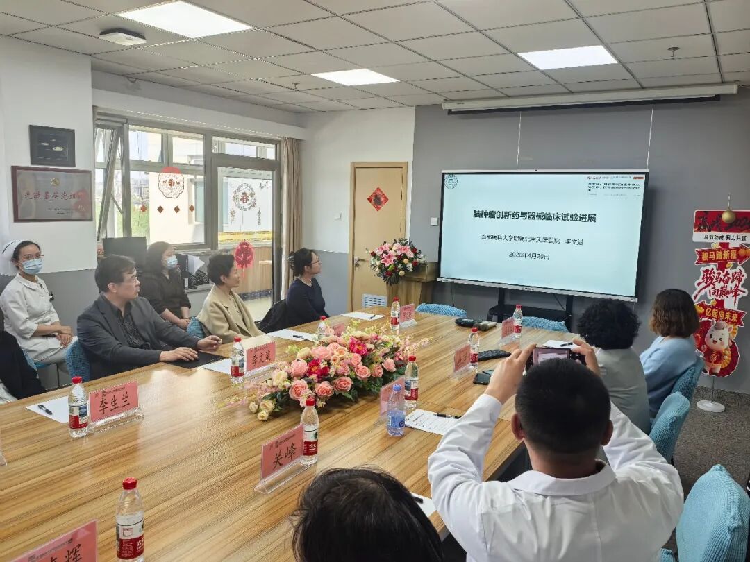 为推动神经肿瘤诊疗领域的学术交流与合作,提升我院在神经肿瘤药物临床试验及神经肿瘤综合治疗领域的诊疗与科研水平。4月20日,首都医科大学附属北京天坛医院神经肿瘤综合治疗病区李文斌教授、陈峰教授带领专家团队莅临我院开展专题学术讲座、座谈交流,并实地参观调研我院研究型病房。我院研究型病房(Ⅰ期病房)杜萍主任主持本次活动,姚琦院长出席并致辞,科研处冯英梅处长、神经病学中心学科带头人关峰教授、神经内科孙奉辉主任带领全体医护人员全程参与交流研讨。