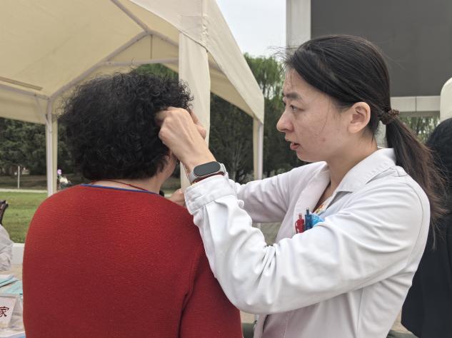 活动现场,中国中医科学院望京医院平谷院区医护团队分工明确、热情服务,切实为广大群众提供全方位、多角度的健康服务。资深中医师现场坐诊,为群众开展一对一健康咨询与脉诊服务,并熟练运用中医适宜技术耳穴压豆——通过在耳廓对应穴位贴敷王不留行籽,帮助群众调节失眠、头痛、脾胃不和等常见问题。整个活动立足中医辨证施治核心原则,围绕慢性病防治、亚健康调理等群众常见健康问题,深入剖析发病缘由,量身制定个性化诊疗意见与中医调养方案,让群众在家门口便可体验高品质中医药特色诊疗。护理人员细心为居民测量血压,针对血压偏高或异常的群众,详细讲解日常养护要点,手把手指导科学监测方法,并从饮食调理、作息规律等方面给出专业建议,全力守护居民心血管健康。专业营养师聚焦居民关切的膳食合理搭配、慢性病专属饮食调养等热点问题,细致解答各类咨询,积极传播科学营养知识,倡导树立健康饮食观念,有效推动慢性病预防控制工作,让科学健康的生活理念真正走进千家万户、融入日常生活。