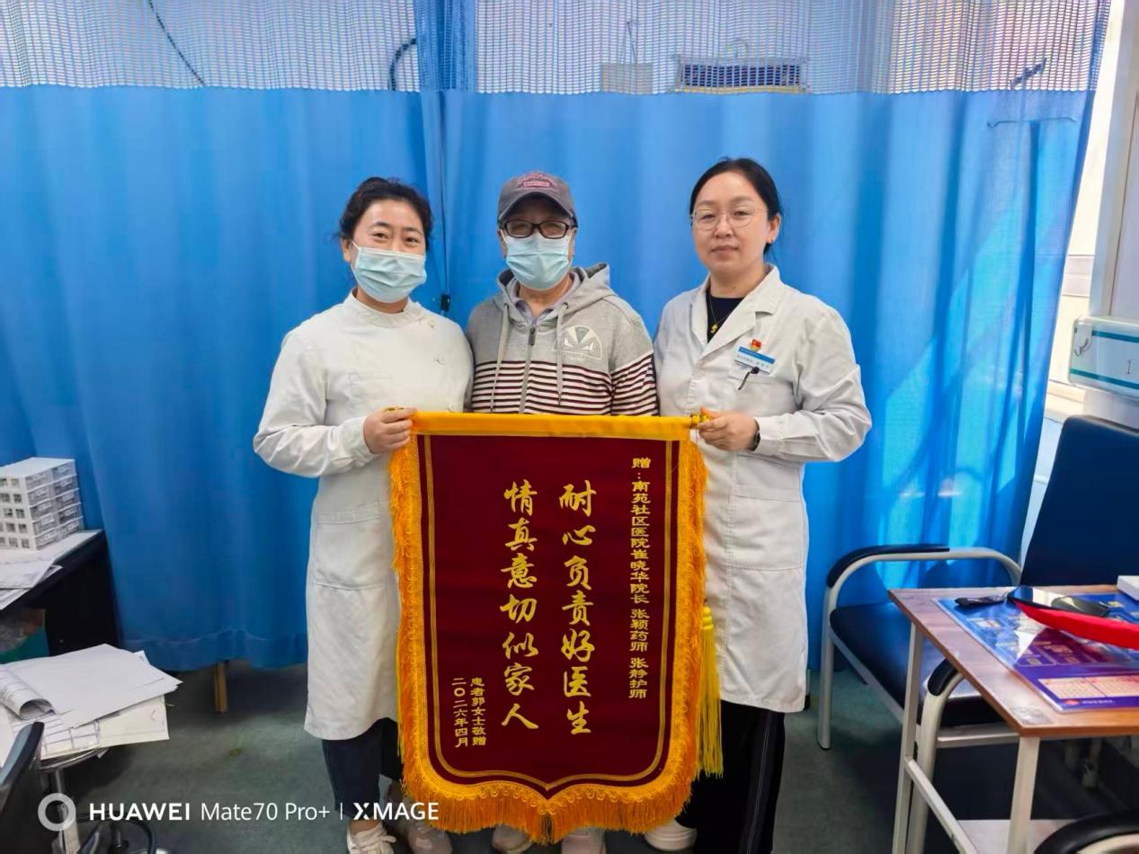 由于救治及时、转诊顺畅,郭阿姨在上级医院得到了有效治疗,最终转危为安。康复后的郭阿姨特意定制了一面锦旗,亲自送到站上。她紧紧握住崔站长及团队成员的手,激动地说:“我那天是陪邻居来的,连号都没挂,你们却一点没有犹豫,比亲人还上心,拼尽全力救我。要不是你们反应快,我真不敢想后果……”