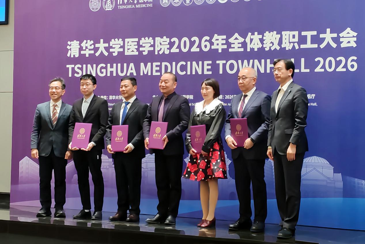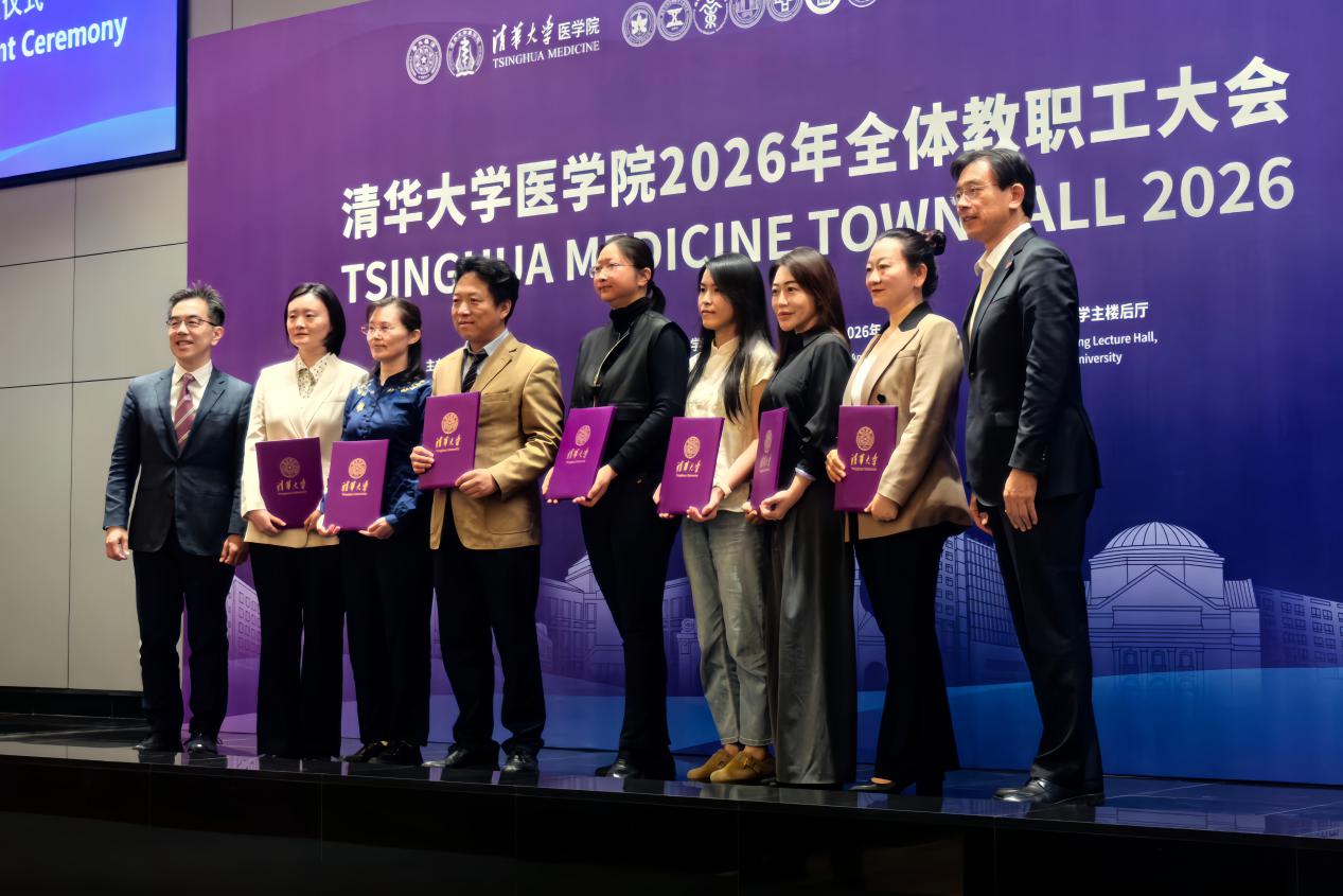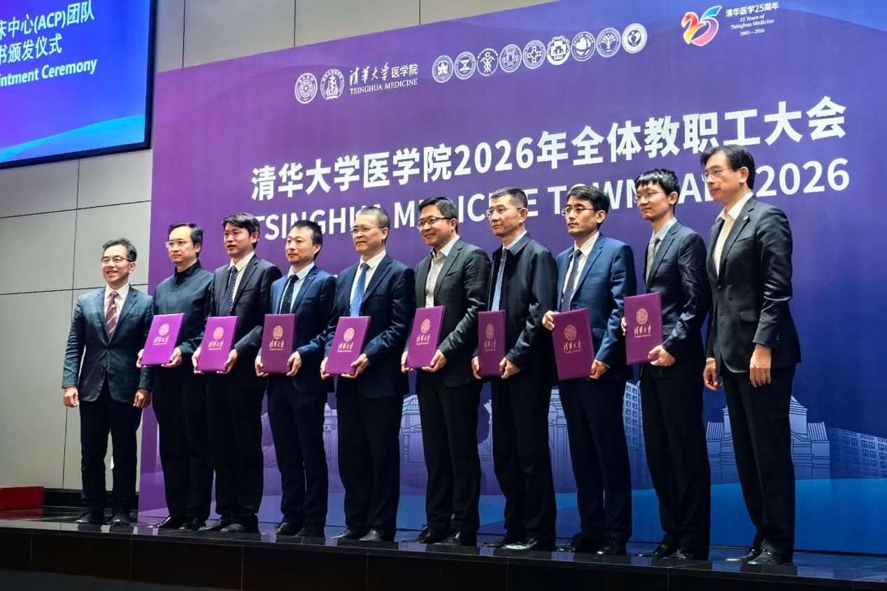 4月23日,清华大学医学院2026年全体教职工大会在清华大学主楼后厅召开,会上举行了清华大学学术临床中心(Academic Clinical Program, ACP)启动仪式,清华大学校长李路明、副教务长、医学院院长黄天荫为学术临床中心的皮肤科、肿瘤、骨科与运动康复三个团队的成员颁发聘请书。