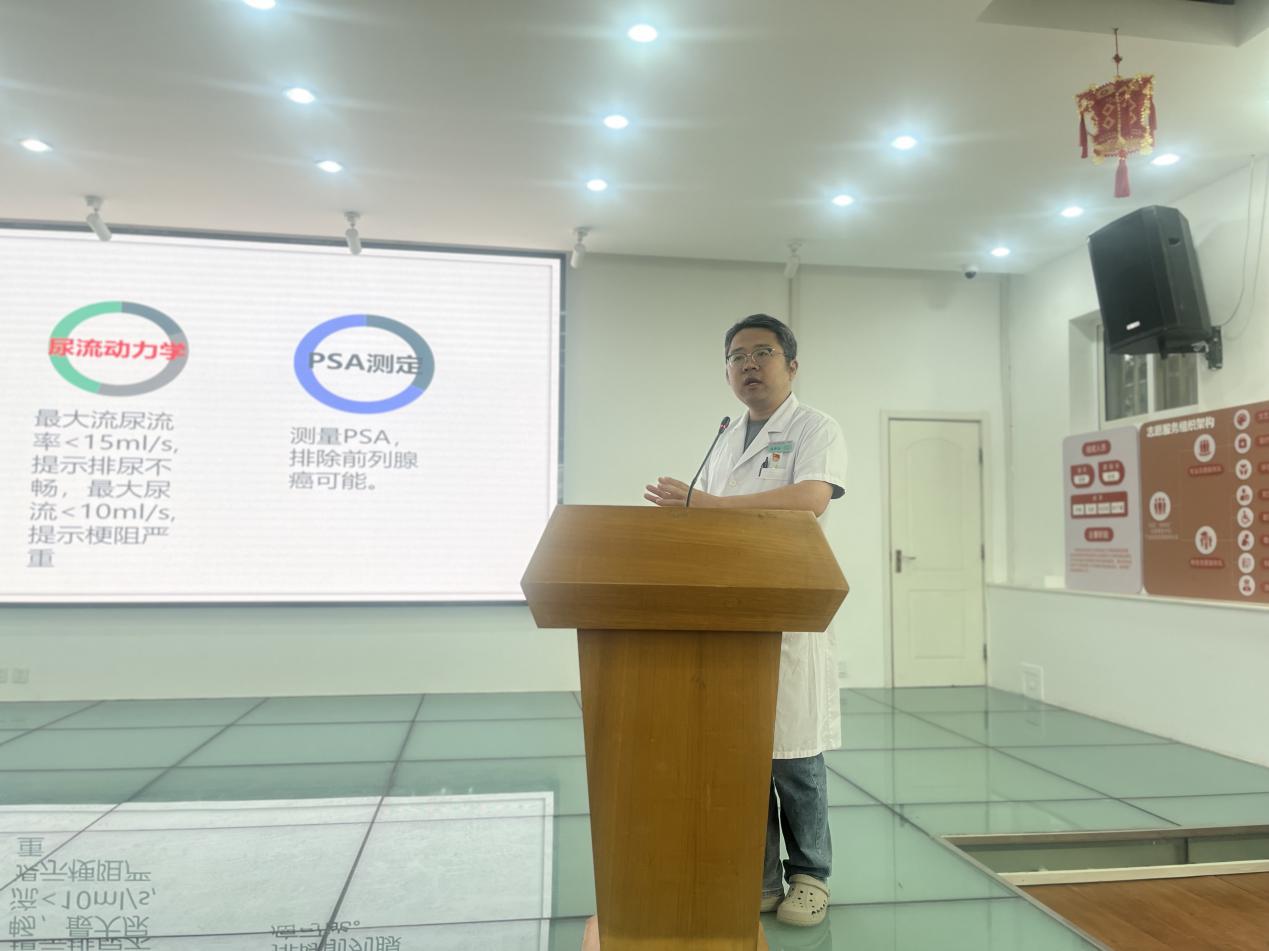 泌尿外科崔新浩主治医师通过《前列腺增生小知识》讲座,针对中老年男性高发的前列腺增生问题,通俗地讲解了其病因、早期信号及诊疗方法,破除“年纪大了尿频正常”的认识误区,引导居民及早就医、科学治疗。