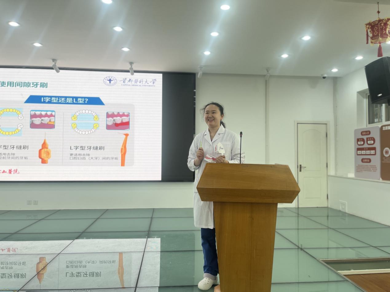 口腔科宋子琦主治医师开展《关注老年口腔健康》科普分享,聚焦牙周病、缺牙修复、义齿护理等老年人口腔常见问题,强调“口腔健康与全身健康息息相关”,并现场教授了正确的刷牙方法和口腔保健技巧。