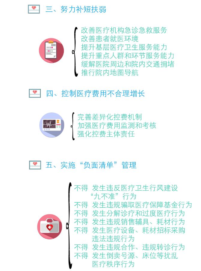 改善医疗服务加强行业监管。制定实施改善医疗服务规范服务行为2019年行动计划,强化对医疗机构的综合监管,完善绩效评价,配套医保报销政策和医疗救助政策,进一步提升百姓看病就医获得感。