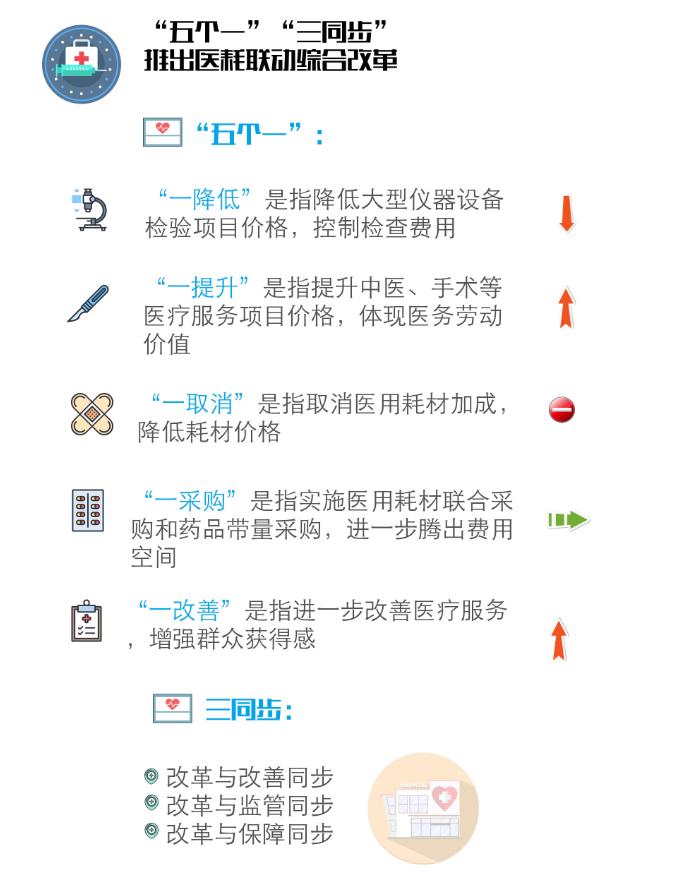 本轮改革与医药分开综合改革一脉相承,方案主体内容可以概述为“五个一”,即一降低、一提升、一取消、一采购、一改善。