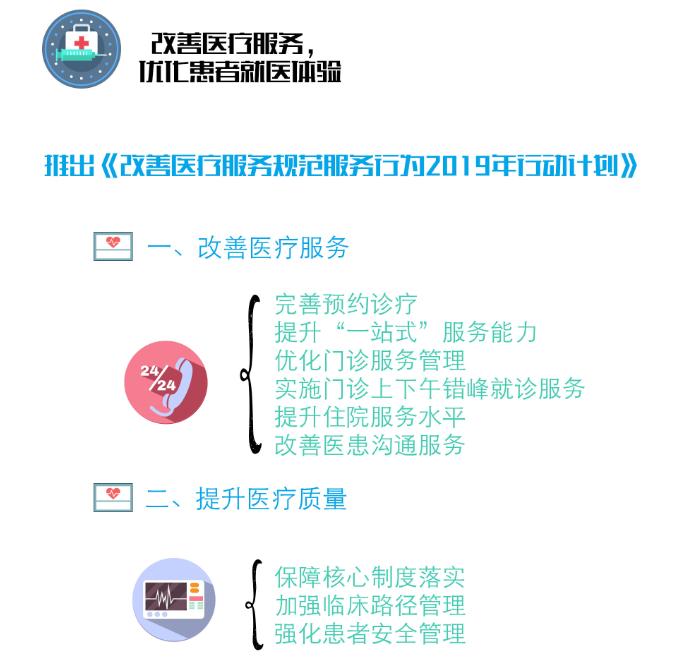 健康北京注意到,除改革方案和价格文件外,本次还同步印发了《改善医疗服务规范服务行为2019年行动计划》。