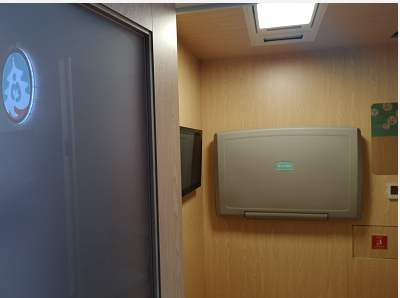 北医三院就有这样一台移动母婴室。今天下午,北青报记者来到北医三院儿科二楼,在候诊区的一角,看到了这台原木色的移动母婴室,母婴室门口贴有二维码,扫描二维码注册后就可打开,室内有一个婴儿护理台、一个沙发坐和一台电视,面积不大,但基本可以满足临时哺乳需求。