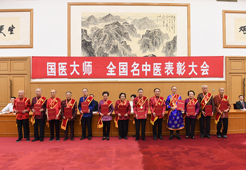 在中国好医生、中国好护士颁奖典礼上,柴嵩岩的学生、北京中医医院妇科主任滕秀香(第一排左三)代表柴嵩岩领奖