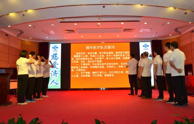 在仪式上,全体医疗队员庄严宣誓,要发扬敬佑生命、甘于奉献、救死扶伤、大爱无疆的中国医务人员精神,承诺将牢记祖国重托,不辱使命,为提高受援国人民健康水平,增进中国和受援国人民友谊做出积极贡献。