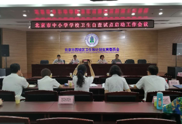 2018年6月15日,北京市卫生计生委联合市教委召开试点工作培训启动会。西城、大兴区卫生计生委、教委相关负责人,北京市、西城、大兴区卫生计生监督所相关负责人,西城、大兴区学校卫生保健所所长,20家试点学校主管校长及相关负责人参加了会议。会议对《北京市中小学学校卫生自查试点工作方案》进行了解读,对“学校卫生安全管理和服务系统”进行了培训,并就学校开展自监管工作中的问题进行了研讨。