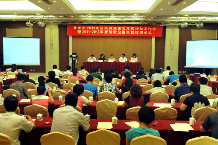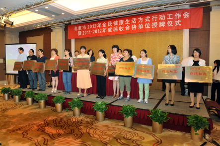 2012年6月13日,北京市卫生局召开2012年全民健康生活方式行动工作会暨2011-2012年度验收合格单位授牌仪式。各区县卫生局和示范创建机构代表共计160余人出席了会议。市卫生局赵春惠副局长出席会议并讲话。会议由市卫生局疾控处谢辉处长主持。
