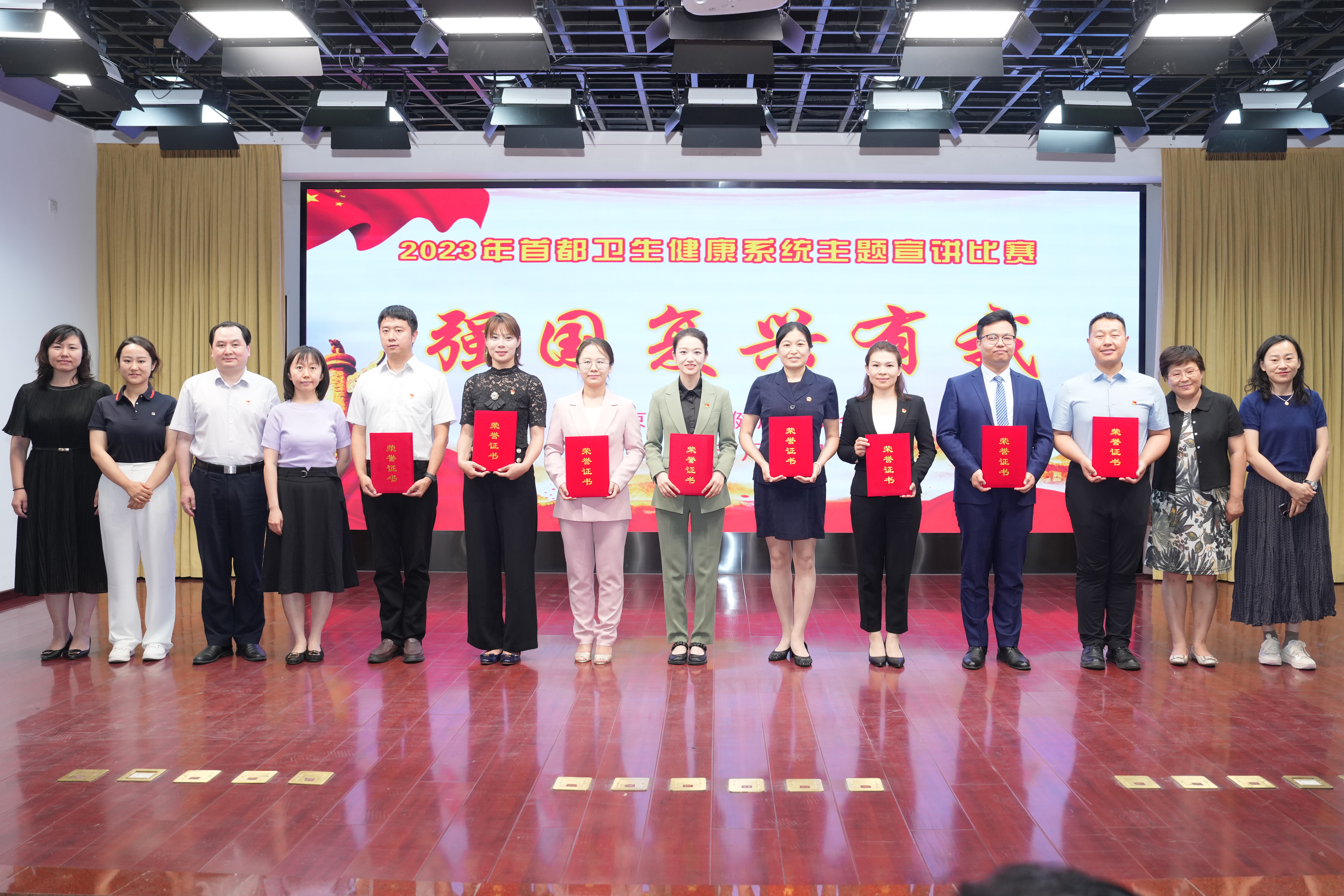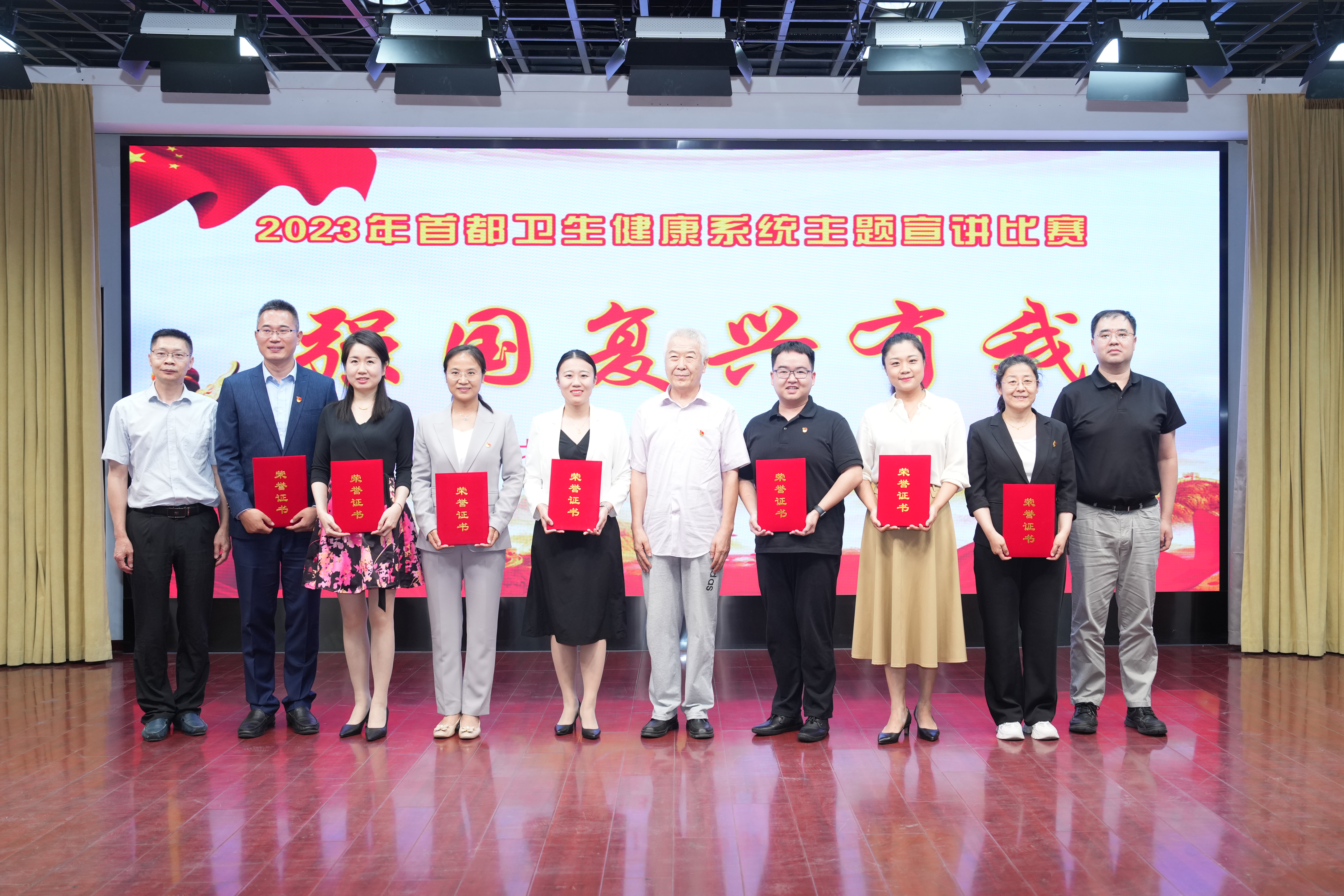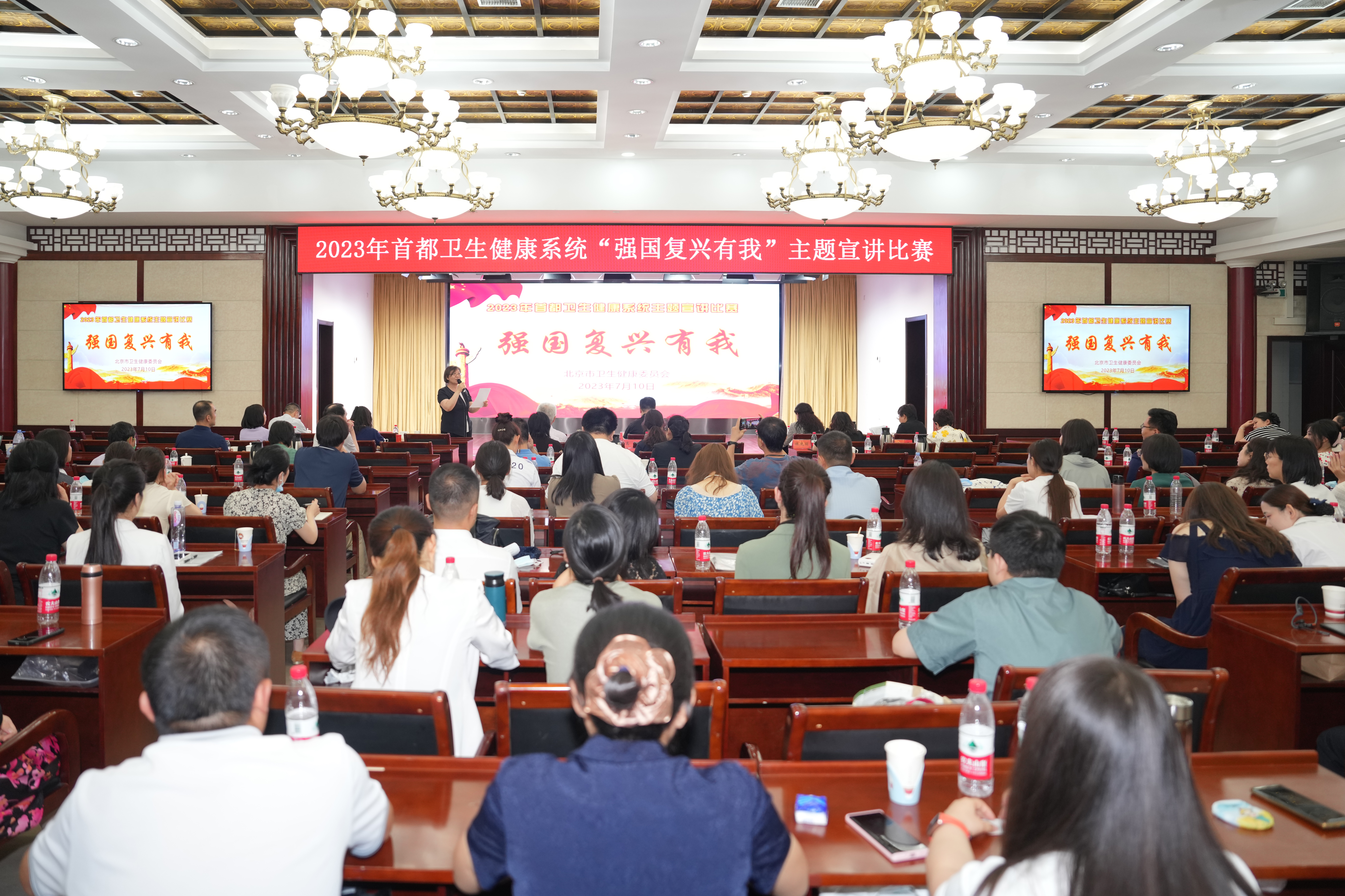 为落实习近平总书记“讲好中国故事,展现真实、立体、全面的中国”重要指示精神,充分展示广大首都卫生健康工作者“敬佑生命、救死扶伤、甘于奉献、大爱无疆”的精神风貌,为推动首都卫生健康事业高质量发展提供强大精神动力,2023年7月10日,市卫生健康委在委党校举办2023年首都卫生健康系统“强国复兴有我”主题宣讲比赛,56个单位选送的56名选手参加比赛。国家卫生健康委、市委宣传部、市社会科学院、市卫生健康委等部门负责人和首都卫生健康系统党建协调机制成员单位负责人及新闻媒体代表担任评委。