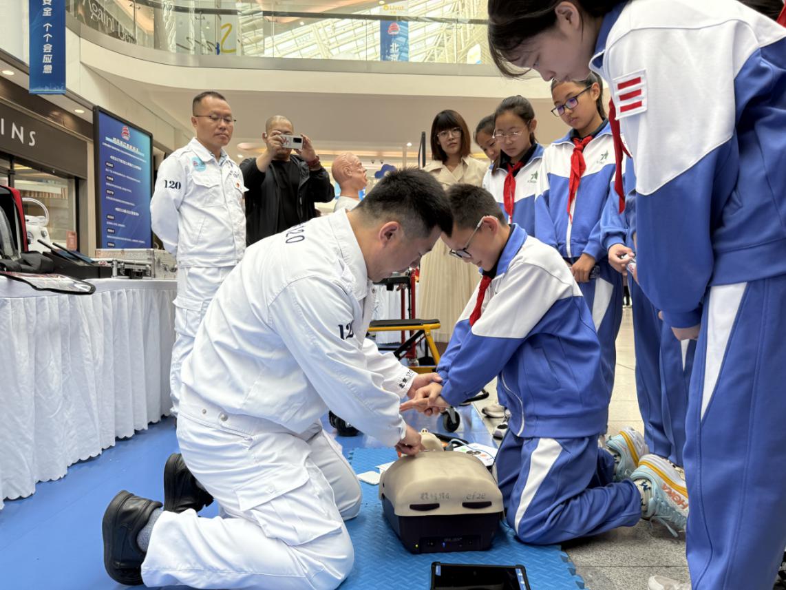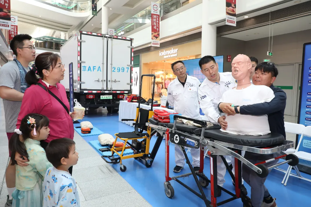 在应急救护活动区,北京急救中心专家团队为公众讲解急救知识,指导急救操作,普及卫生应急知识。通过使用模拟人生动讲解心肺复苏术、海姆立克急救法的操作手法及AED(自动体外除颤器)的使用方法,将面对突发心搏骤停、气道异物梗阻和室颤等多种急危重症时的急救知识和技能传授给社会公众。