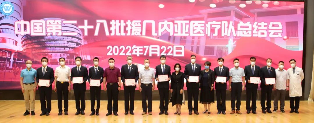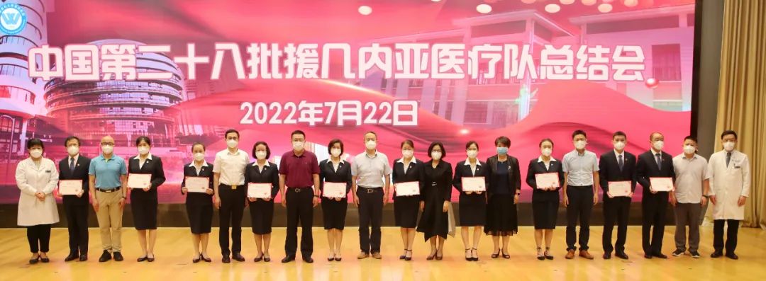 2022年7月22日,第28批援几内亚中国医疗队总结会召开。国家卫生健康委国际合作司副司长、一级巡视员何炤华、北京市卫生健康委员会二级巡视员郑晋普出席会议并讲话,首都医科大学副校长吉训明、宣武医院、北京市疾病预防控制中心相关领导出席会议。第28批援几内亚医疗队全体队员参加会议。