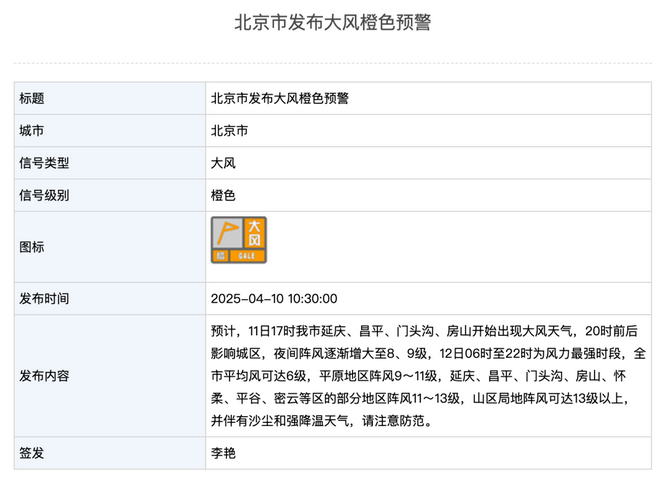 北京市气象台首席预报员雷蕾介绍此次大风天气极端性强、持续时间长、影响范围广、致灾性强,12日白天为风力最强时段。