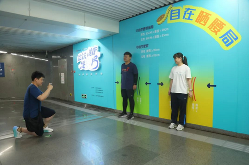 走进车站,站厅通道墙上一句句流行的“生活梗”让人忍俊不禁,“做一个油盐不进,情绪稳定的成年人”“拒绝吃饼,控碳中”……这些看似风趣的文案背后,蕴含着实用的生活技巧;“除了能吃 更要‘慧’吃”展示每日健康食物种类和比例,让大家更加科学的进行健康体重管理;“1公里步行,3公里骑行,5公里公共交通”绿色出行方式,引导大家共享绿色生活;自动售货机旁“打工人都懂的上火瞬间”配上男女不同标准的饮水提示,让科普信息瞬间有了画面感。