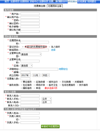 3. 填写完信息之后,点击“申请成为志愿团体”。等待后台通过申请方可成功注册。