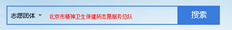 2. 点击上图“新闻文章”旁的下拉三角,选择“志愿团体”,并输入“北京市精神卫生保健所志愿服务总队”( 见下图)。