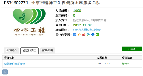 6. 利用相同的操作方法,搜索并申请加入“北京市精神卫生保健所志愿服务总队**分队”。