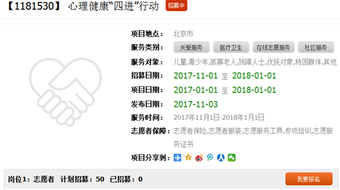 为更好的规范心理服务志愿者参与社区心理健康宣传与教育工作,将依托“志愿北京”平台进行工作记录。各区做好相关动员、组织管理,确保工作落实到位。
