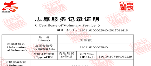 (2)在页面左侧选择“用户中心”—“志愿项目”—“下载证明”,即可生成“志愿服务记录证明”(见下图)。