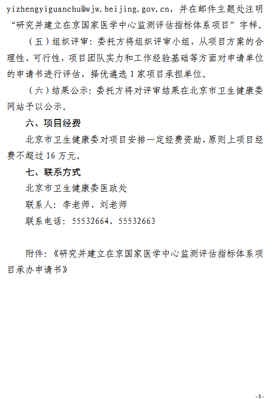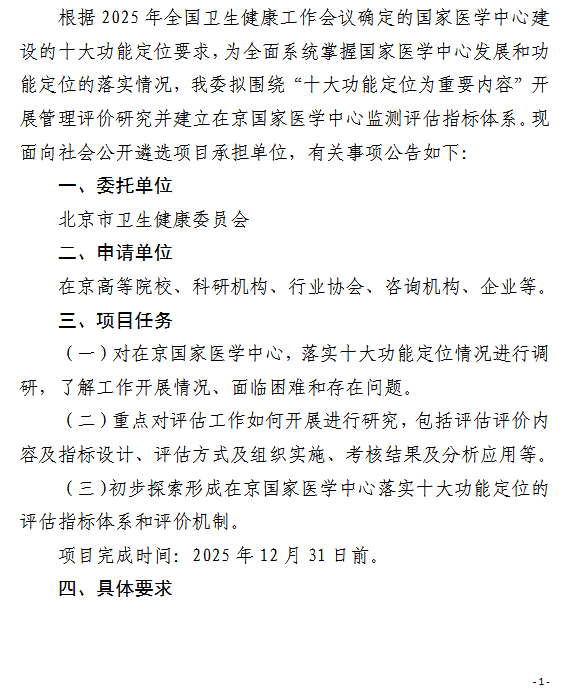 关于医疗服务管理评价-研究并建立在京国家医学中心监测评估指标体系项目遴选的公告