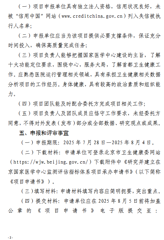 20250724附件 研究并建立在京国家医学中心监测评估指标体系项目承办申请书
