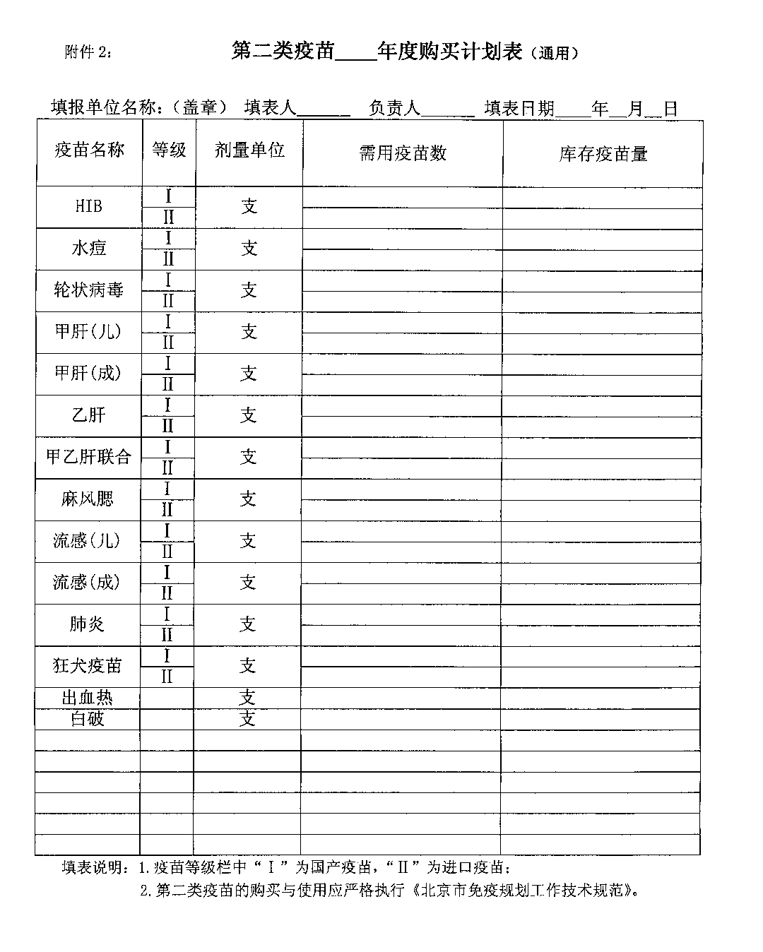 2.第二类疫苗 年度购买计划表(通用)